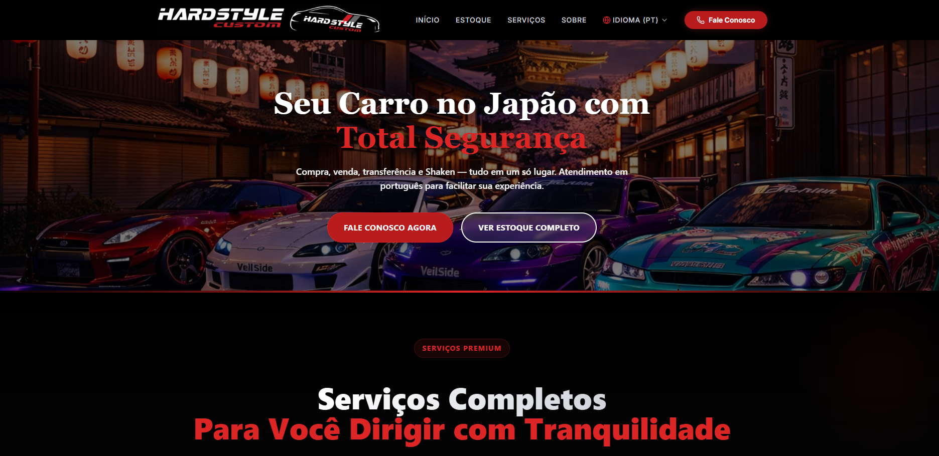 Loja de carros personalizada de acordo com o gosto do cliente, com sistema de multi-idioma.