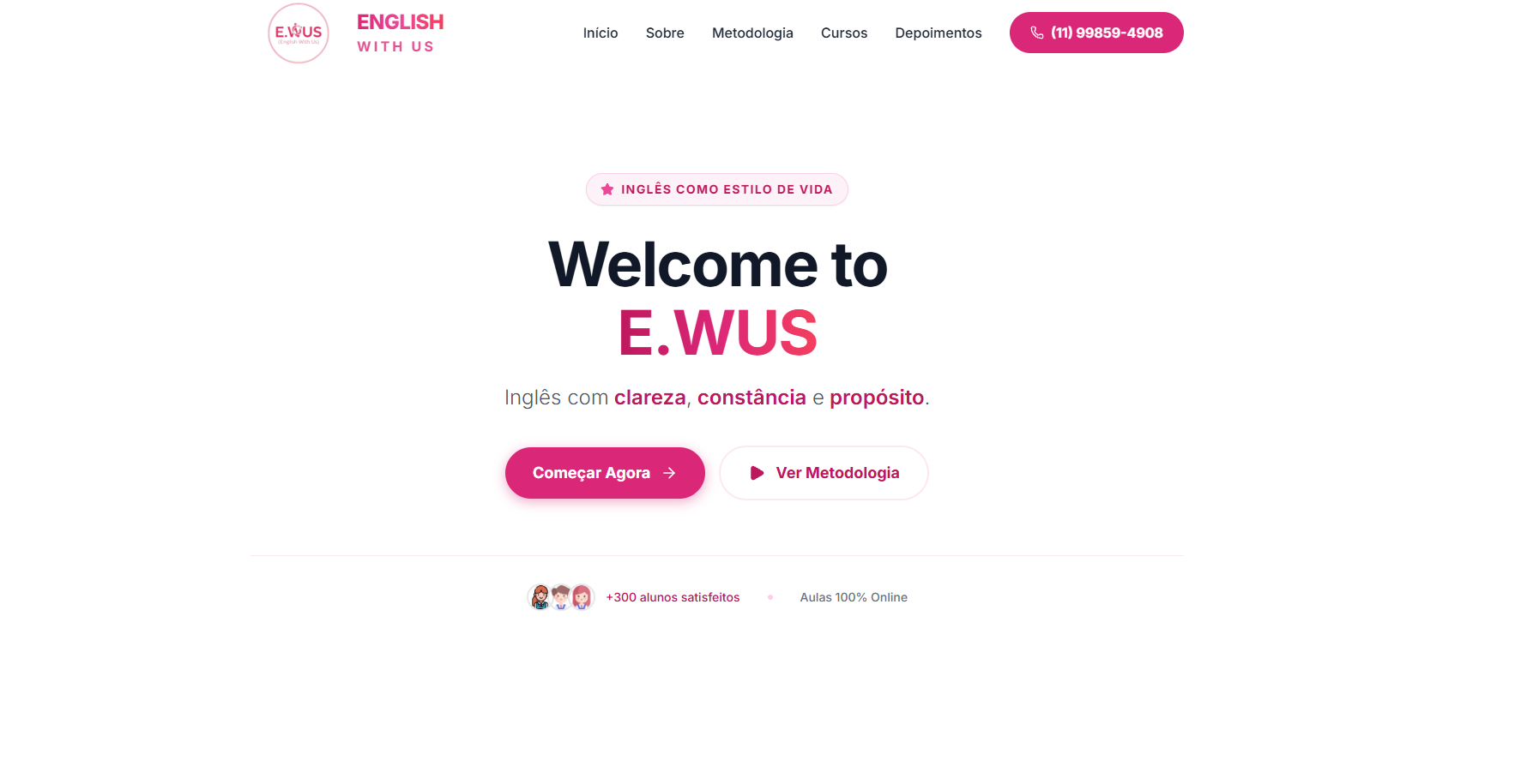 Plataforma educacional para ensino de inglês com metodologia personalizada, alta performance e SEO otimizado.